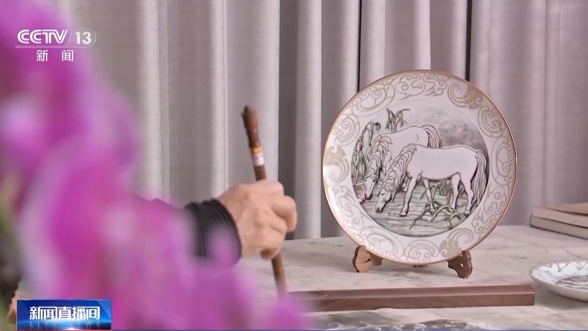 总台《2026年春节联欢晚会》文创“宝骏迎福大师系列”春碗春盘艺术总设计师、中国国家画院研究员 王小燕:马的设计灵感取材于我的国画作品《月光》,“春盘”是以金色线条勾勒出月色之下,两匹白马静饮溪边的画面,它们仿佛刚刚征战归来,暂享宁静,蓄势待发,准备下一程的奔驰,整体传递出福贵安康、幸福常伴的美好祝愿。